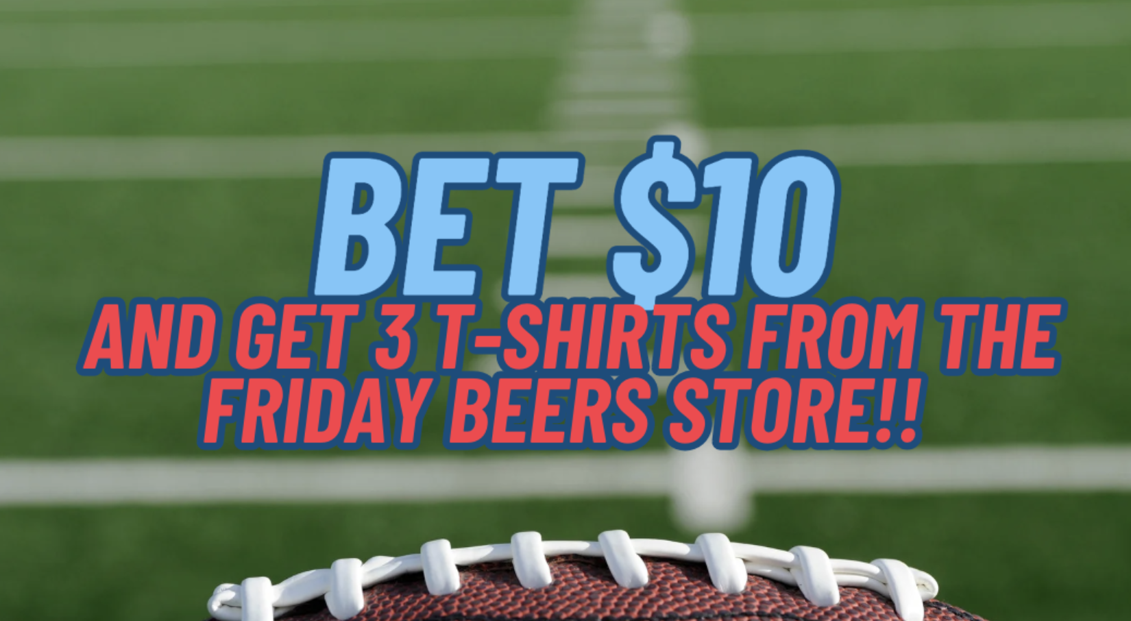 - Place a $10+ bet on Bengals vs Packers & Get 3 free shirts from the Friday Beers Store (AN ACTUAL BET MUST BE PLACED TO RECEIVE THE SHIRTS)